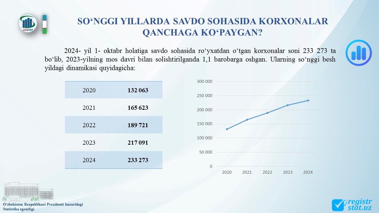 Soʻnggi yillarda savdo sohasida korxonalar qanchaga koʻpaygan?