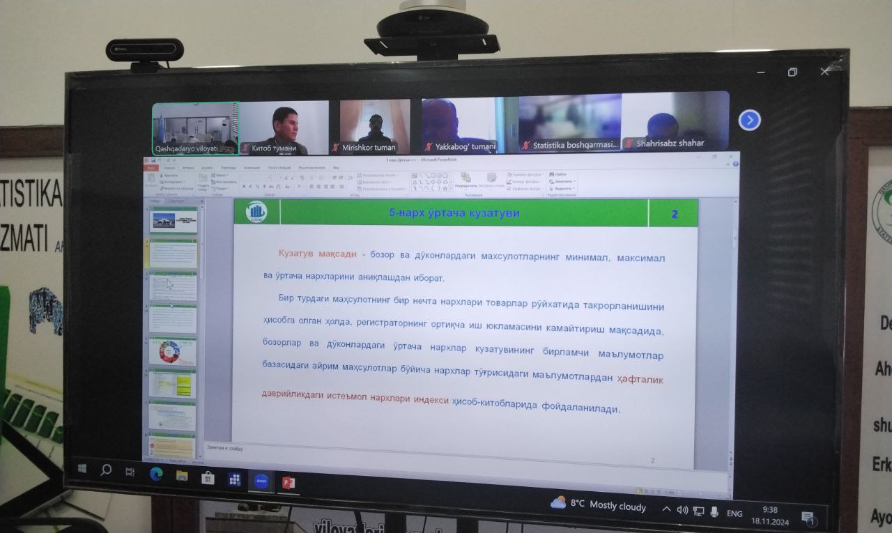 Joriy yilning 20- dekabr kuni Oʻzbekiston Respublikasi Prezidenti huzuridagi Statistika agentligida Qoraqalpogʻiston Respublikasi, viloyatlar va Toshkent shahar statistika boshqarmalarining Ijtimoiy soha statistikasi boʻlimi xodimlari uchun ijtimoiy soha statistikasiga oid koʻrsatkichlar va ularni shakllantirish tartibi boʻyicha amalga oshirilayotgan ishlar holati va kelgusidagi ustuvor vazifalar yuzasidan onlayn vebinar tashkil etildi.